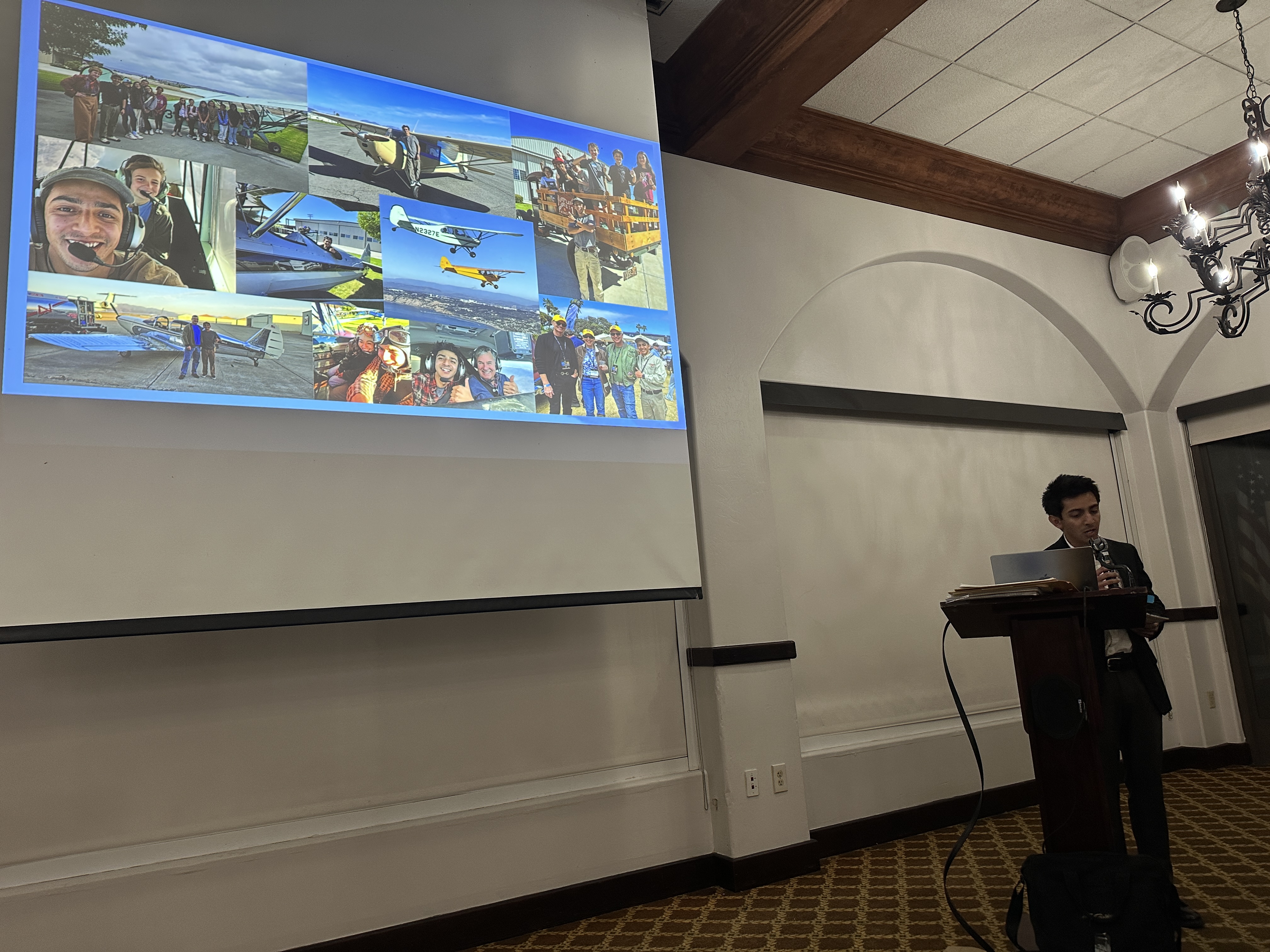Wes Ramos opened the Scholarship segment of the evening with a presentation that reflected on how his aviator career has developed over the last few years and how his membership in our Antiquer community has impacted him personally. Â Wes won an Antiquers scholarship 2024 and spoke about the positive impact of that award and perhaps most rewarding to all of us is his "pay it forward" outlook on life. He has my vote as future candidate for President of the AAASDC!