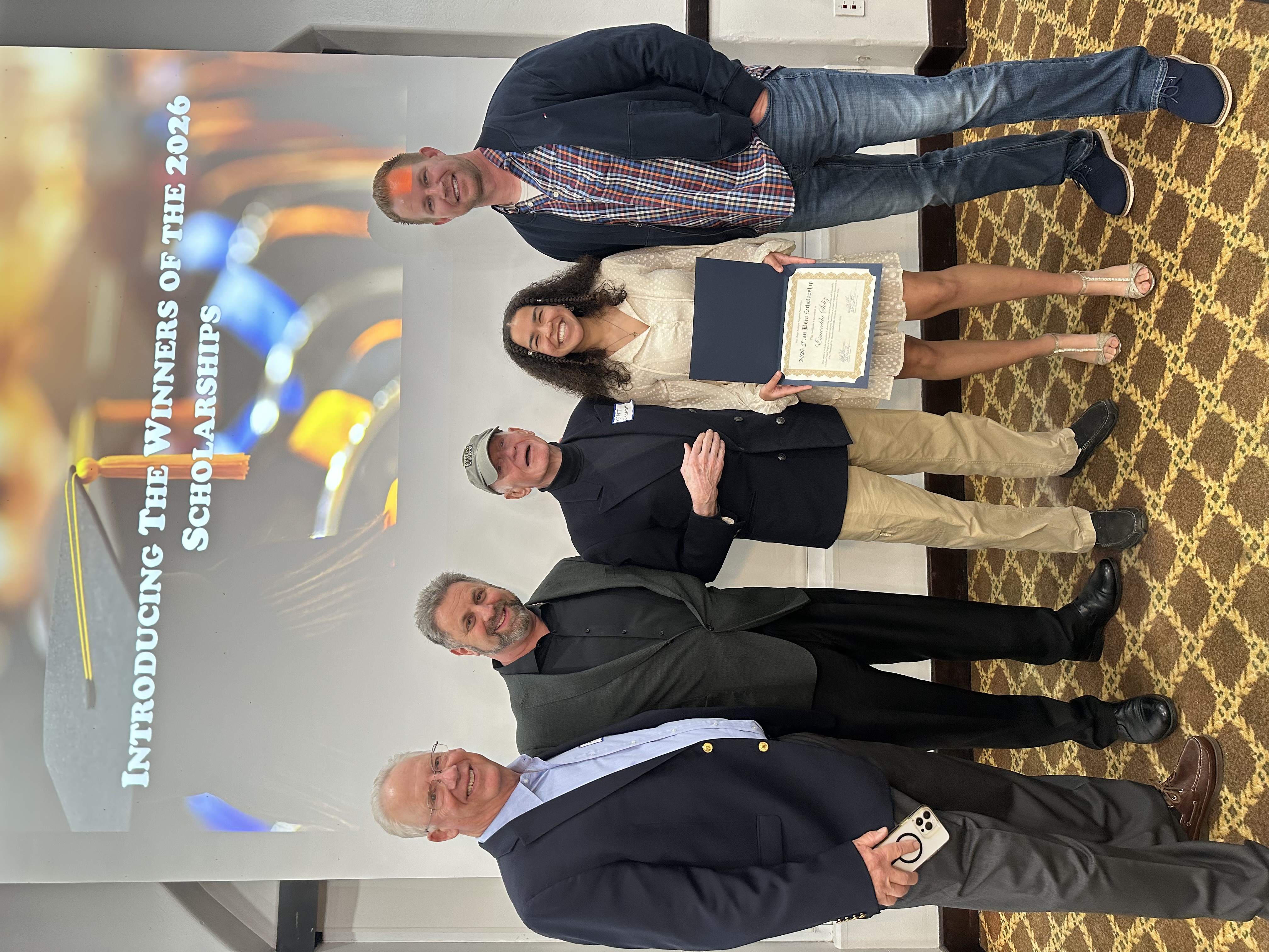 Winners of this year's Scholarship Awards ($1500 each) were Sabrina Knauss and Esmerelda Soliz. Â Both awards were in the Flight Training category. Â Sabrina was away attending UC Davis and was represented by her father who read Sabrina's speech (while we had her on the phone). Â Esmerelda was accompanied by her Mother and also gave a captivating recap of how her passion for flying had evolved from her first flight in a commercial jet (I think we can all recall such an influence on our own aviator passions).